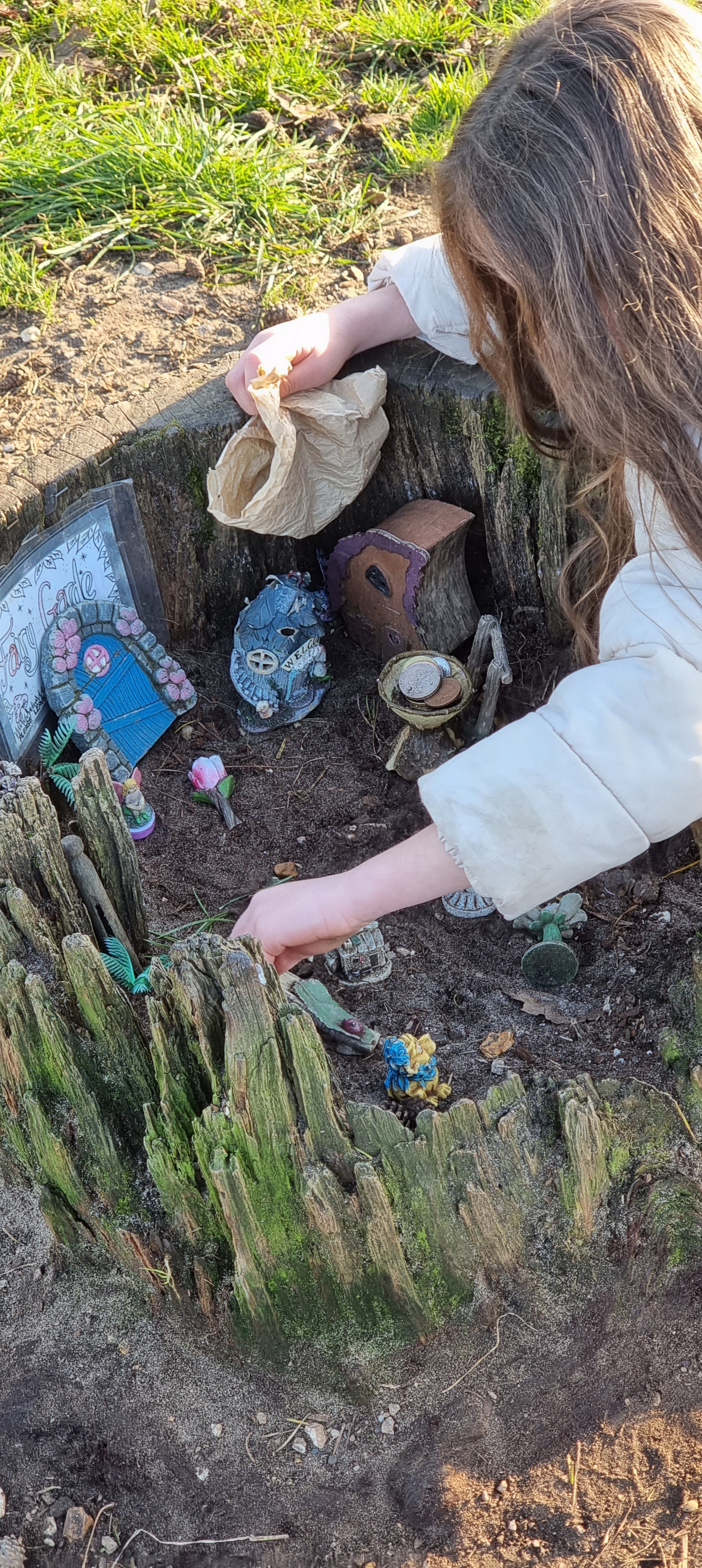 Another nice touch was this fairy garden, set in a tree stump. Bella really enjoyed investigating the various pieces here.